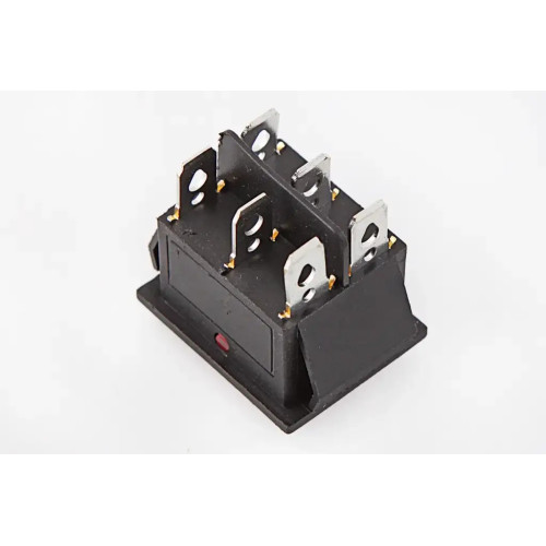 Вимикач клавіші 25x31 мм з 6 контактами і 3 станами, оснащені підсвічуванням 12В. Ідеально підходить для використання в різних електричних ланцюгах. Компактний і надійний, він облаштовує зручне керування освітленням і електроприладами.