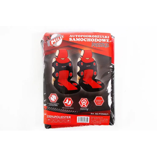Чехи на сідниці Milex Prestige надають вашому авто стильному вигляду і захист. Яскравий червоний і якісні матеріали забезпечують довговічність і легкість у догляді. До складу включено 2 чохли для передніх сидіння.