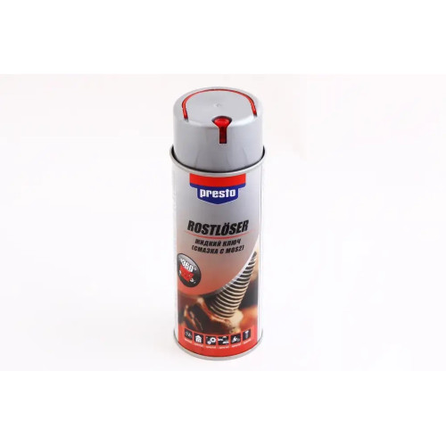 Багатофункціональна мастила Presto Жидкий ключ у об’ ємі 400 мл призначено для ефективного видалення іржавих механізмів, змазування механізмів і захисту від коррозії. Ідеально підходить для використання в биті і на виробництві. Зручний розпилювач забезпечує точне нанесення.